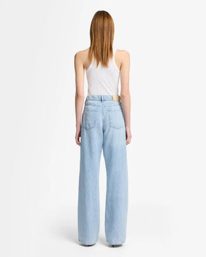 Ce jean à taille haute présente une jambe large élégante, soulignée par une construction ajustée et une coupe subtilement décontractée. Confectionné dans un mélange raffiné de coton et de lin, il allie structure et douceur, assurant respirabilité et confort tout au long de la journée. Réalisé dans un denim léger au délavage épuré, il s’harmonise aisément avec toutes les pièces de votre garde-robe pour une allure naturellement sophistiquée.